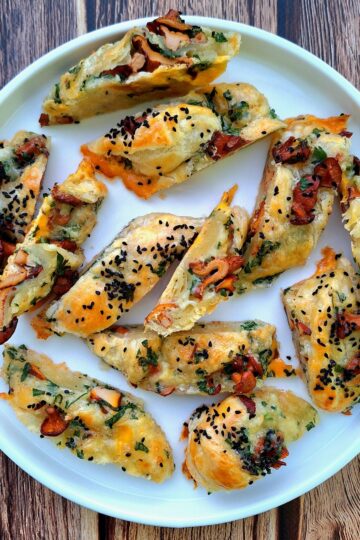 BUŁECZKI Z CIASTA FRANCUSKIEGO Z KOZIM SEREM I KURKAMI
