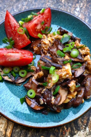 Składniki (2 osoby): 4 jajka z podwójnym żółtkiem,100 g małych podgrzybków,1 pomidor malinowy,1 mała czerwona cebula,2 gałązki szczypioru,1 łyżeczka masła,sól morska, świeży pieprzNa patelni, na rozgrzanym maśle podsmażamy pokrojoną w kostkę cebulę. Gdy się zeszkli, dodajemy pokrojone w paski grzyby. Smażymy około 5 minut. Jajka wbijamy do miski. Doprawiamy solą i pieprzem. Roztrzepujemy za pomocą […]