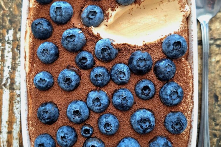 Kawę zaparzamy i studzimy. Moczymy w niej krótko biszkopty i układamy na dnie foremki. Mascarpone ubijamy za pomocą miksera i partiami dodajemy masę krówkową. Gdy składniki się połączą i masa będzie puszysta, równomiernie przekładamy ją na biszkopty. Wstawiamy na kilka godzin do lodówki. Przed podaniem posypujemy przez sitko gorzkim kakao. Na wierzchu układamy owoce.