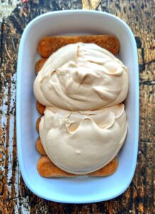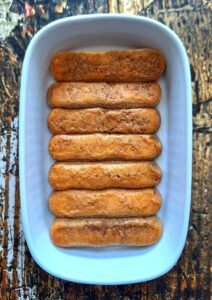Składniki (foremka o wymiarach 15 x 23 cm): 7 podłużnych biszkoptów,