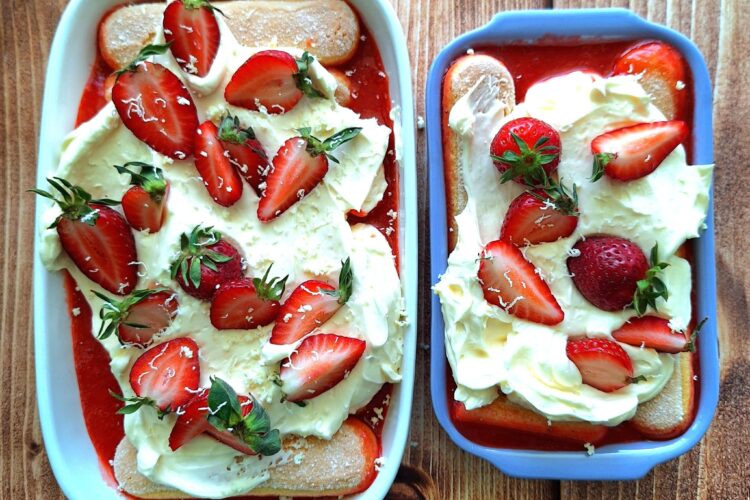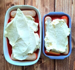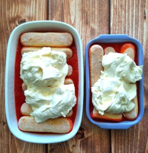 Składniki (foremka o wymiarach 15 x 23 cm oraz druga 10 x 17 cm): 250 g truskawek,